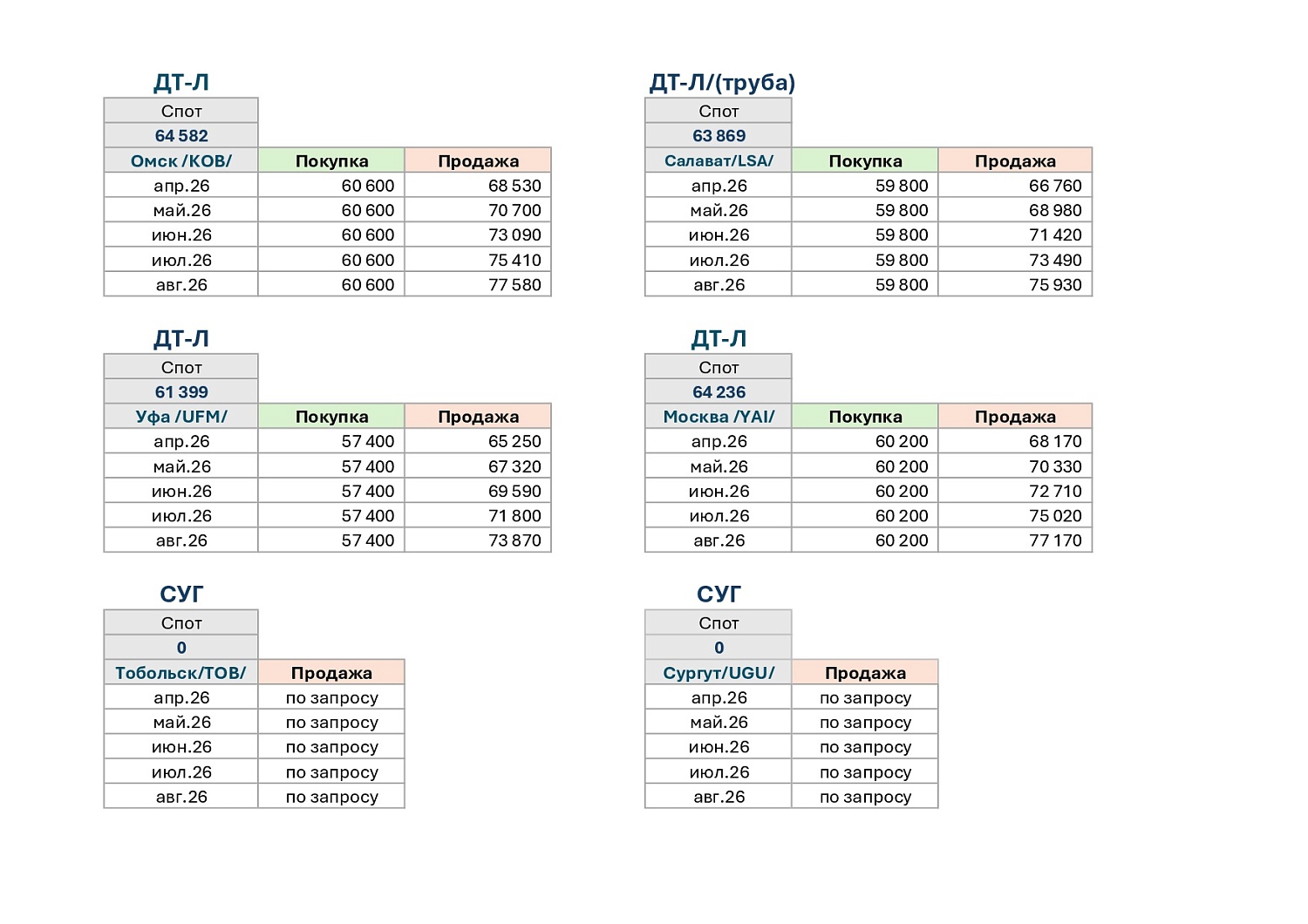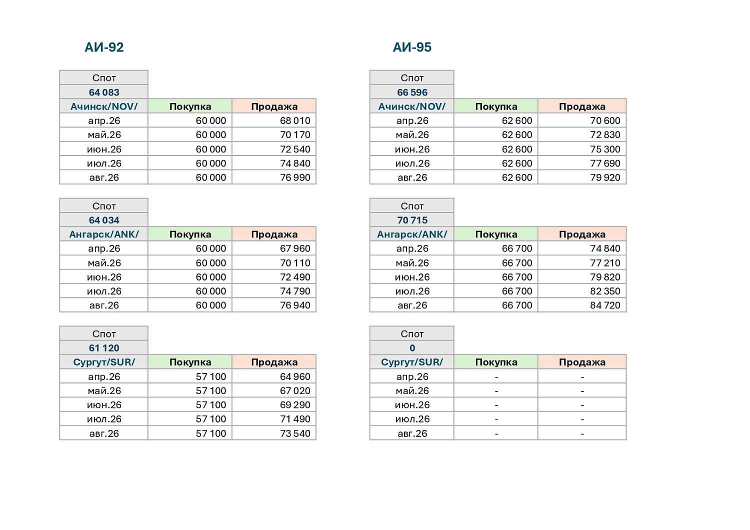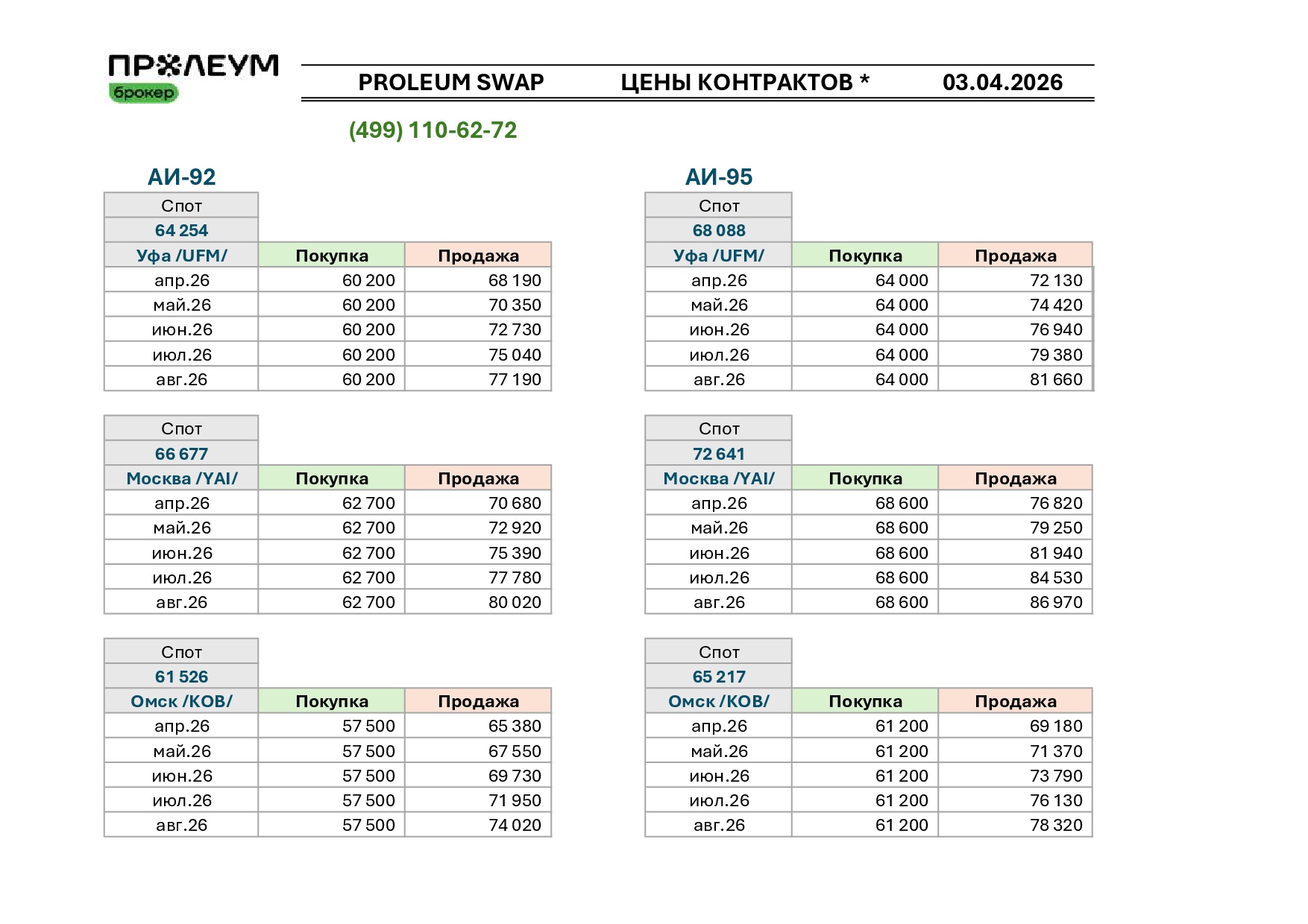 Котировки СВОП-контрактов на нефтепродукты на 03.04.26 г.