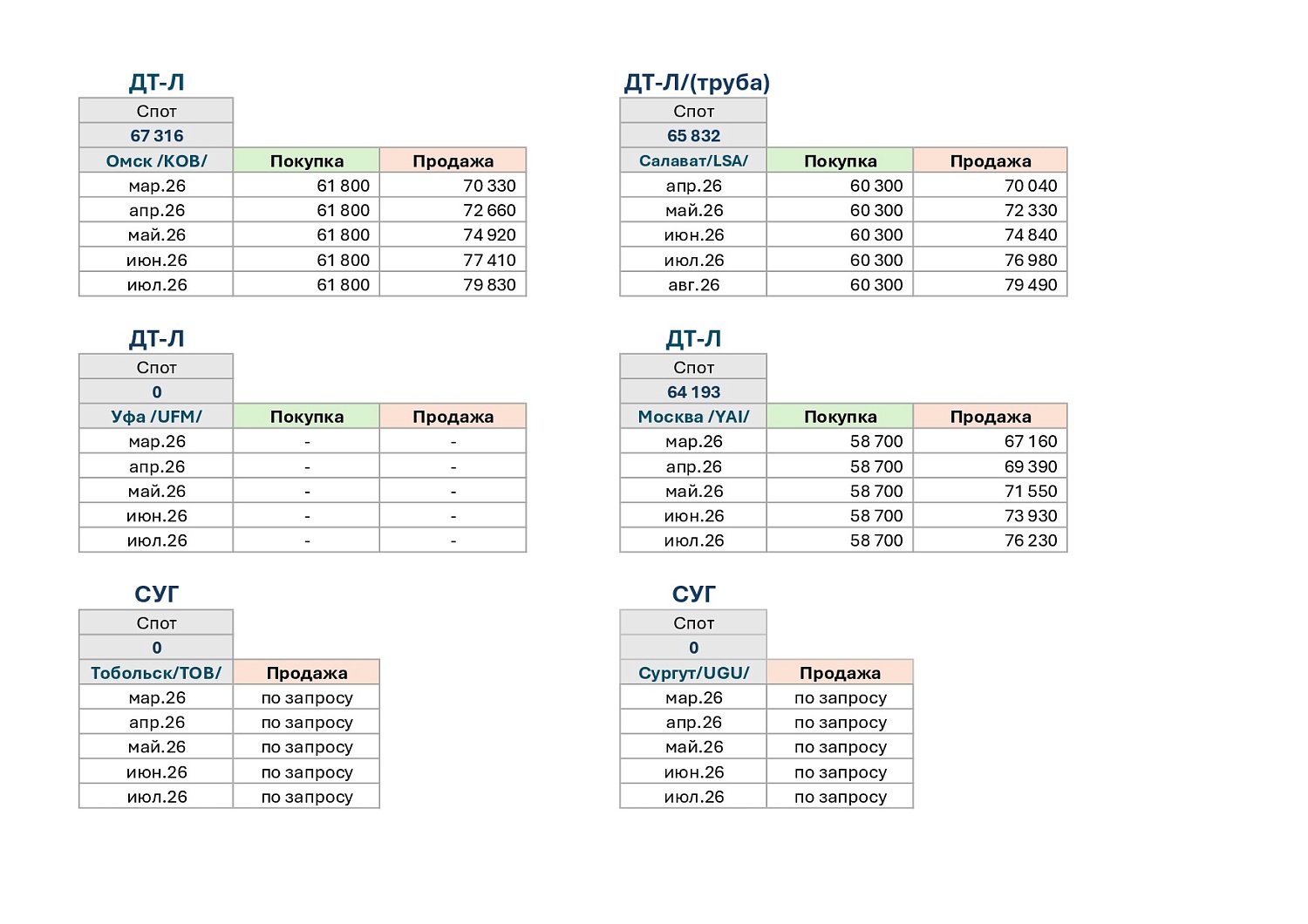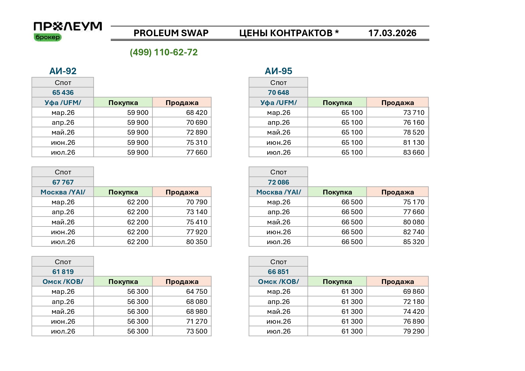 Котировки СВОП-контрактов на нефтепродукты на 17.03.26 г.